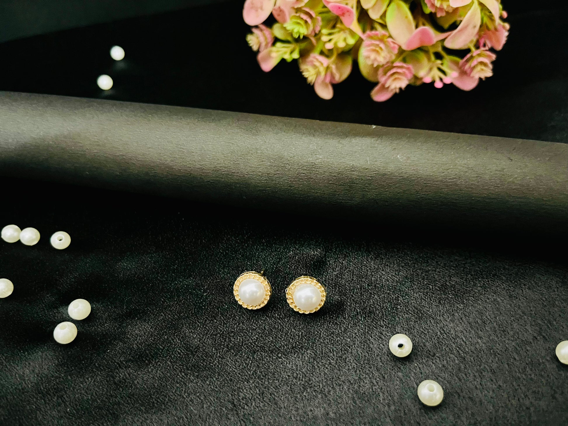 Add timeless elegance to your jewelry collection with these Golden Pearl Stud Earrings. Featuring a lustrous pearl centerpiece framed by a golden textured border, these earrings are the perfect blend of sophistication and simplicity. Ideal for both daily wear and special occasions.