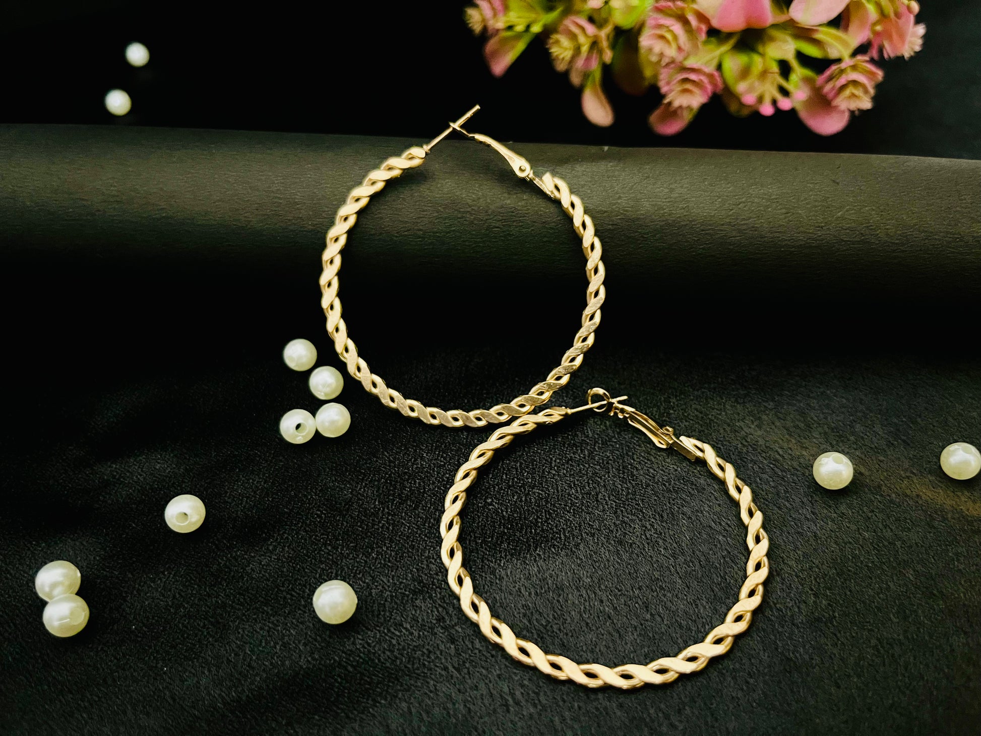 Golden Twisted Hoop Earrings | Classic Everyday Hoops for Women