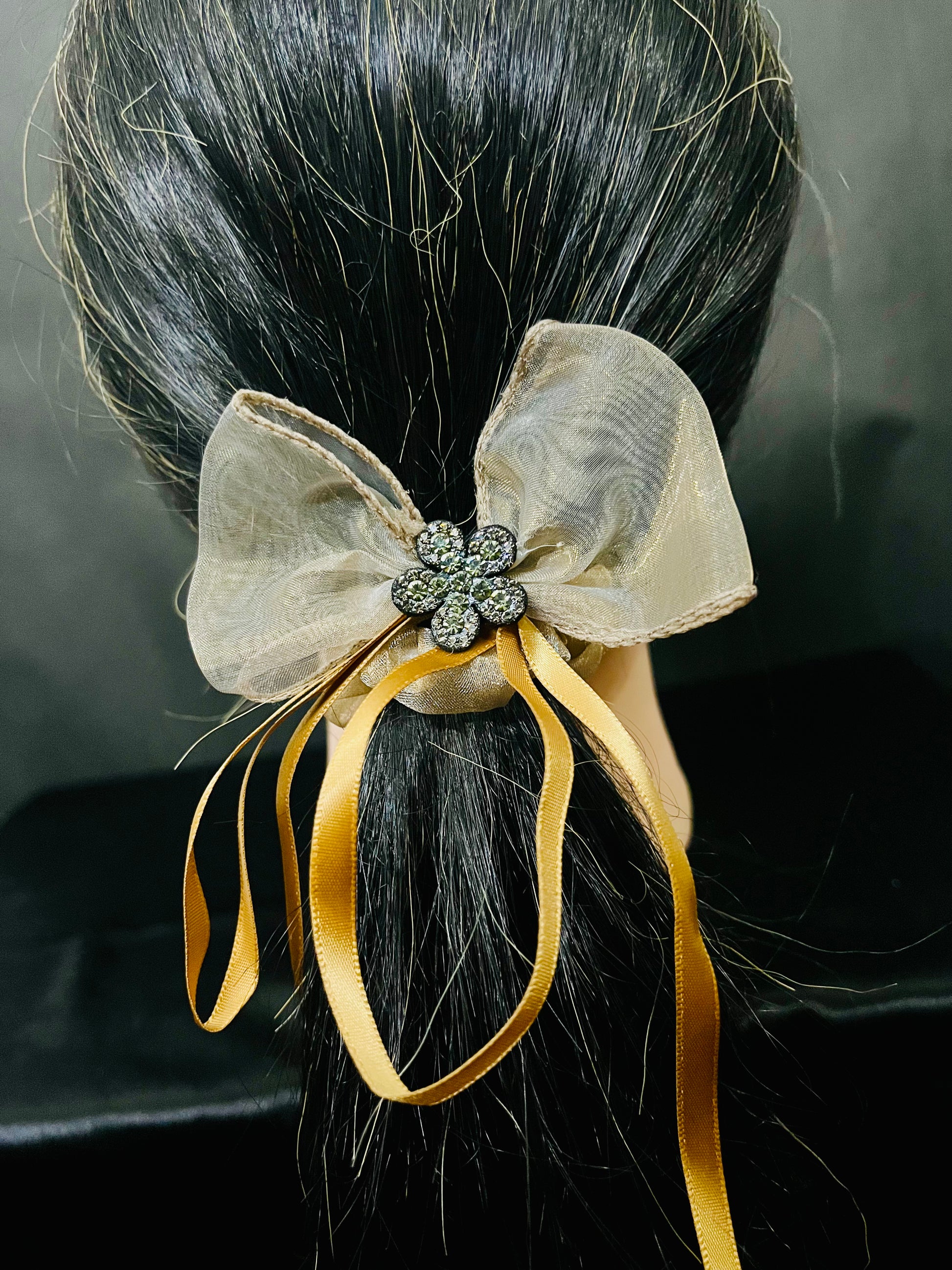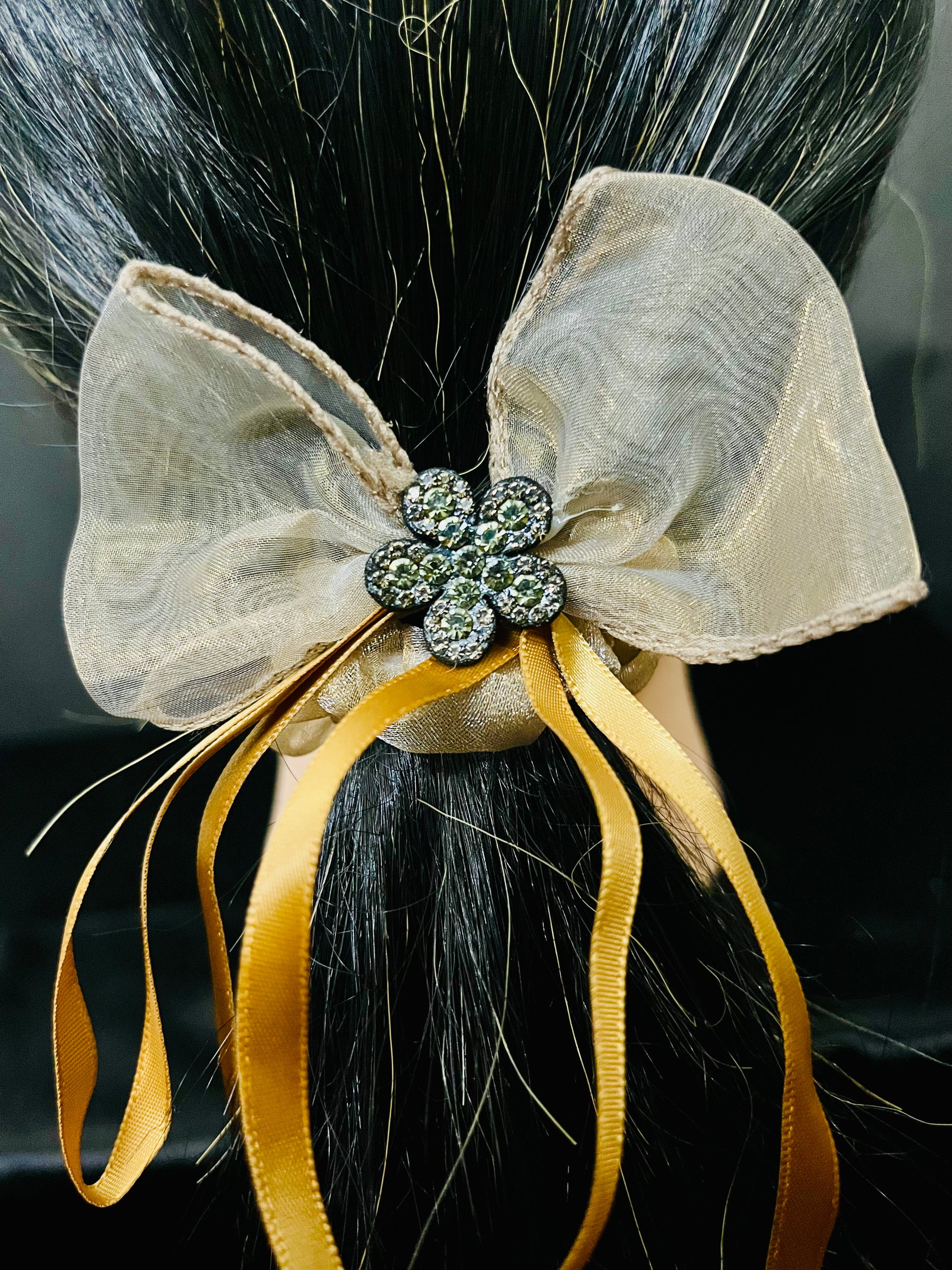 Upgrade your hair accessory collection with this Pack of 2 Elegant Bow Scrunchies. Each scrunchie is beautifully crafted with soft organza fabric, satin ribbon bows, and a sparkling rhinestone flower charm that adds a touch of luxury to your hairstyle. Perfect for daily wear, festive outfits, or gifting, these scrunchies offer both style and comfort.