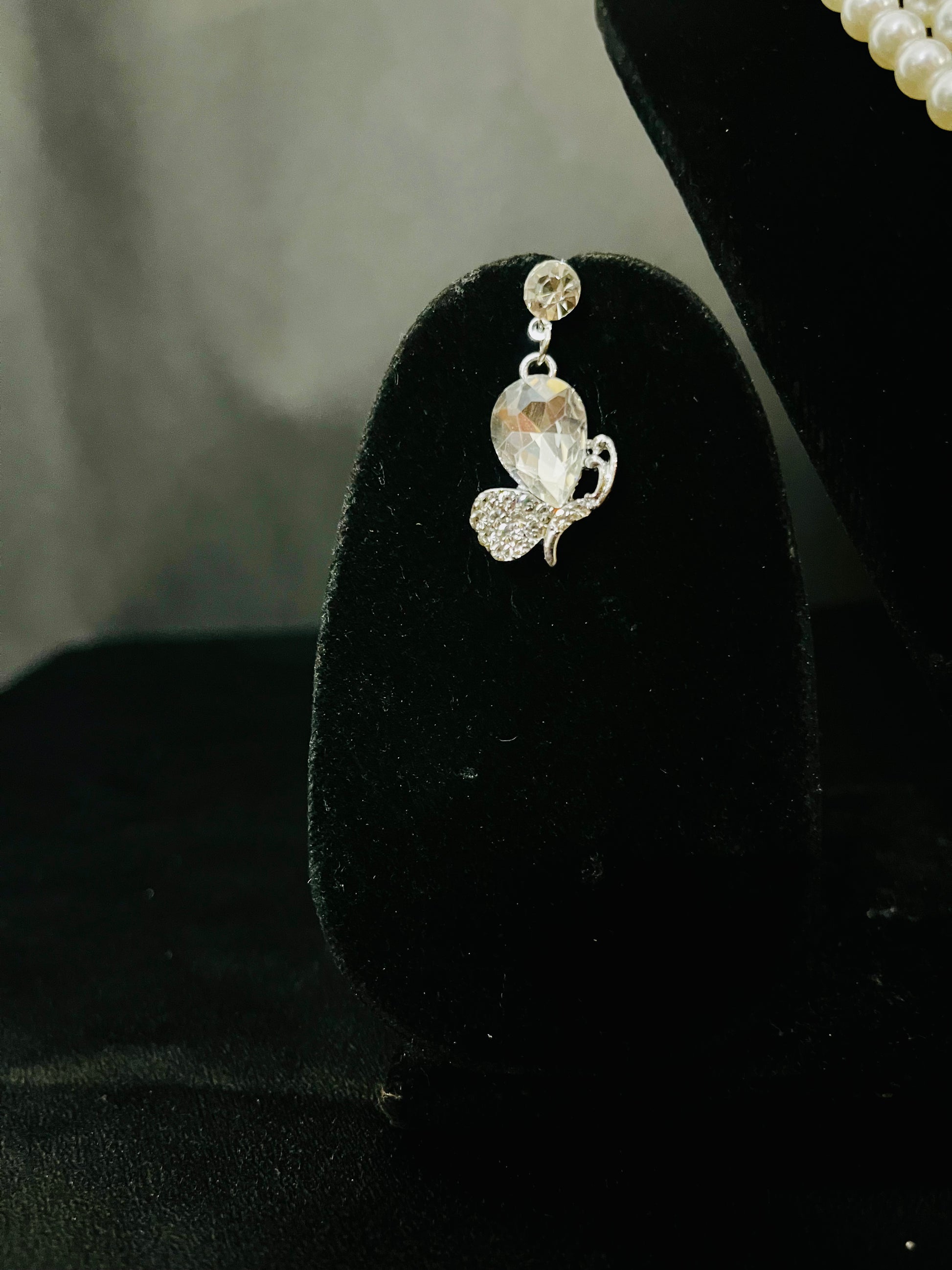 Pearl Necklace Set with Crystal Butterfly Pendant & Earrings – Bridal & Party Jewellery