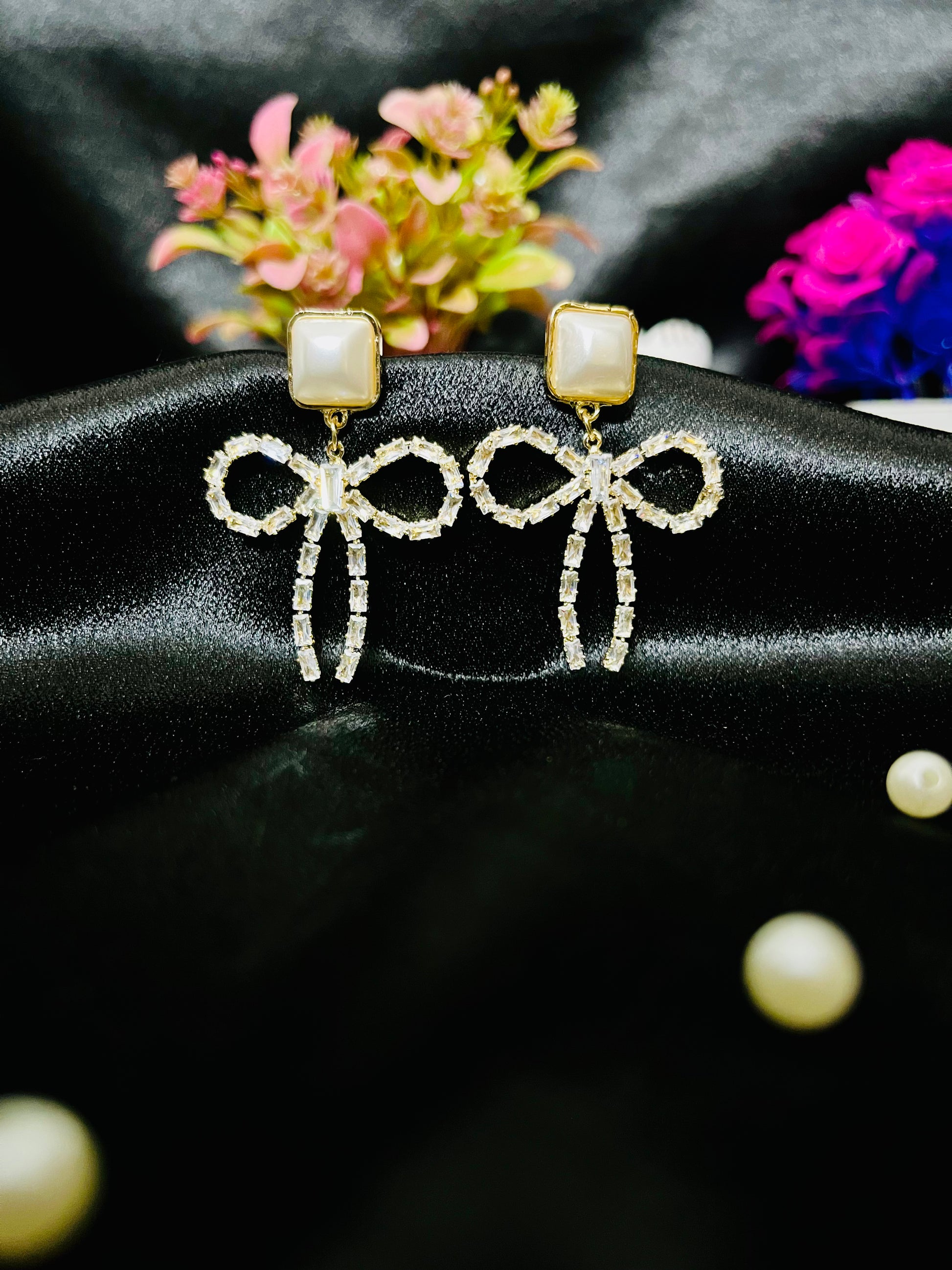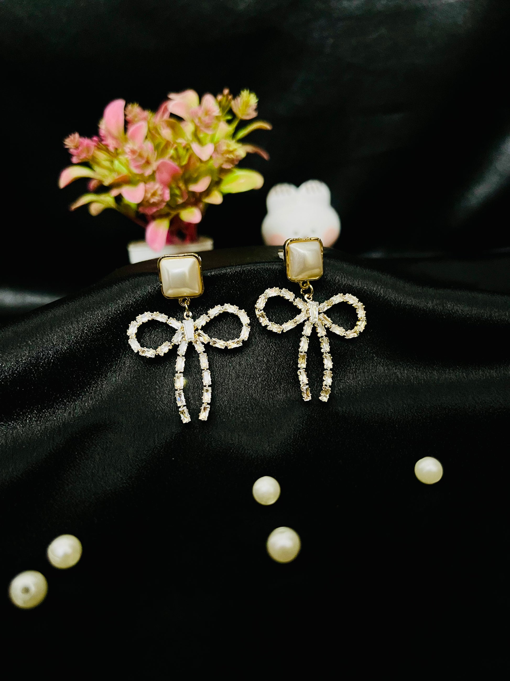 Pearl Stud Bow Crystal Earrings | Elegant Partywear Jewelry