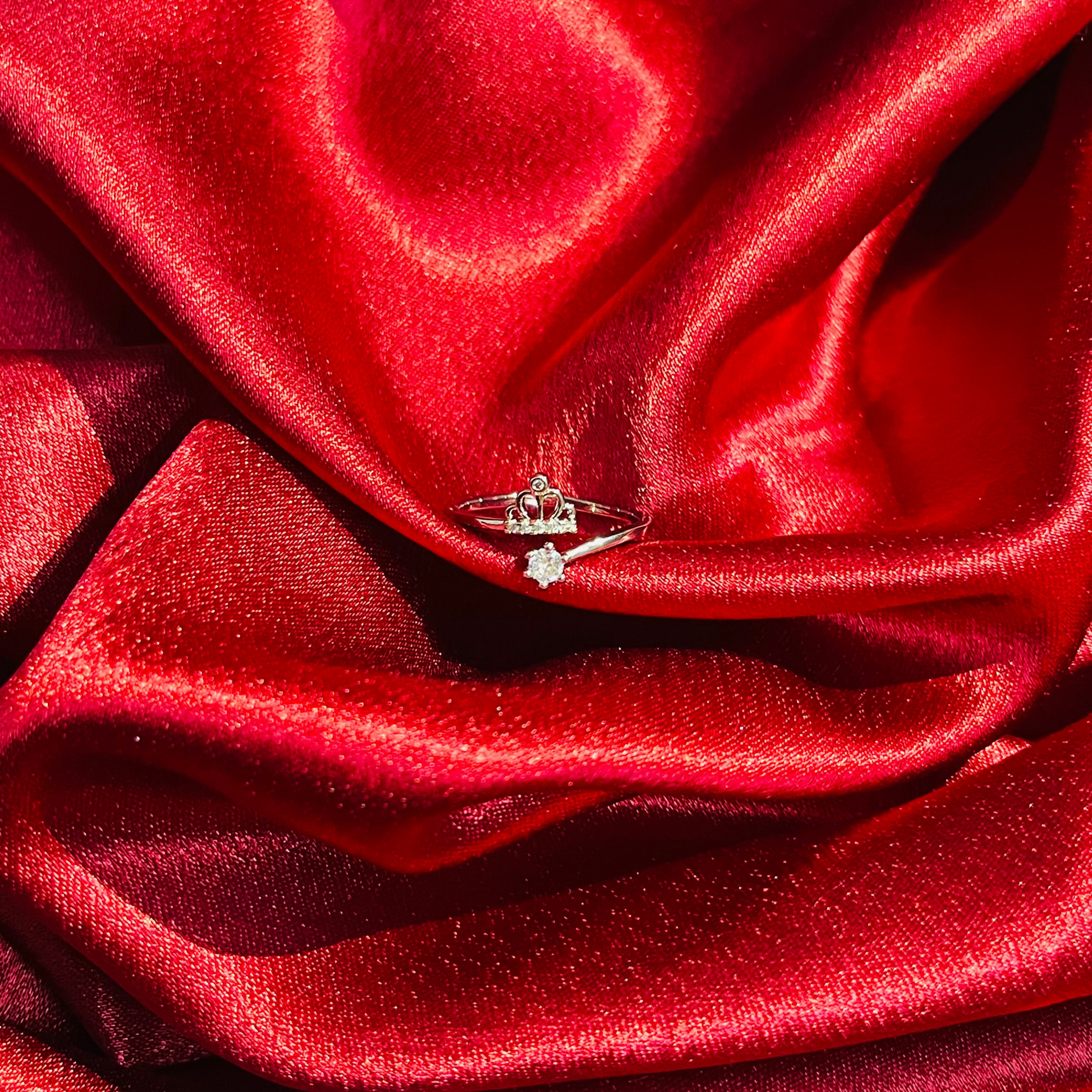 Silver Crown and Solitaire Design Ring Adjustable Crystal Women’s Fashion Jewellery