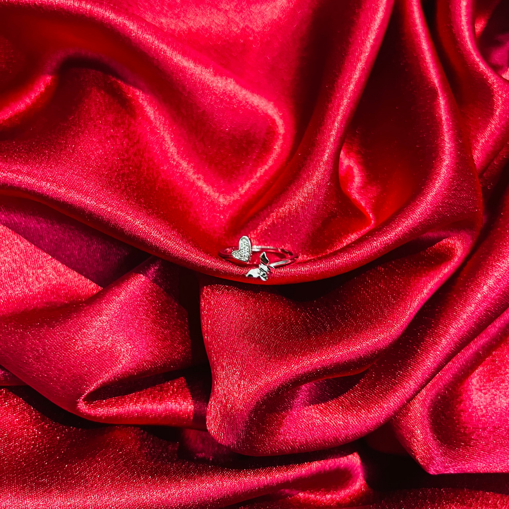 Celebrate love and charm with this Silver Heart and Butterfly Ring crafted in a delicate open design. Featuring a sparkling heart detail and a graceful butterfly accent this adjustable ring adds a playful yet elegant touch to your style. Perfect for gifting to someone special or treating yourself to a romantic piece of jewelry