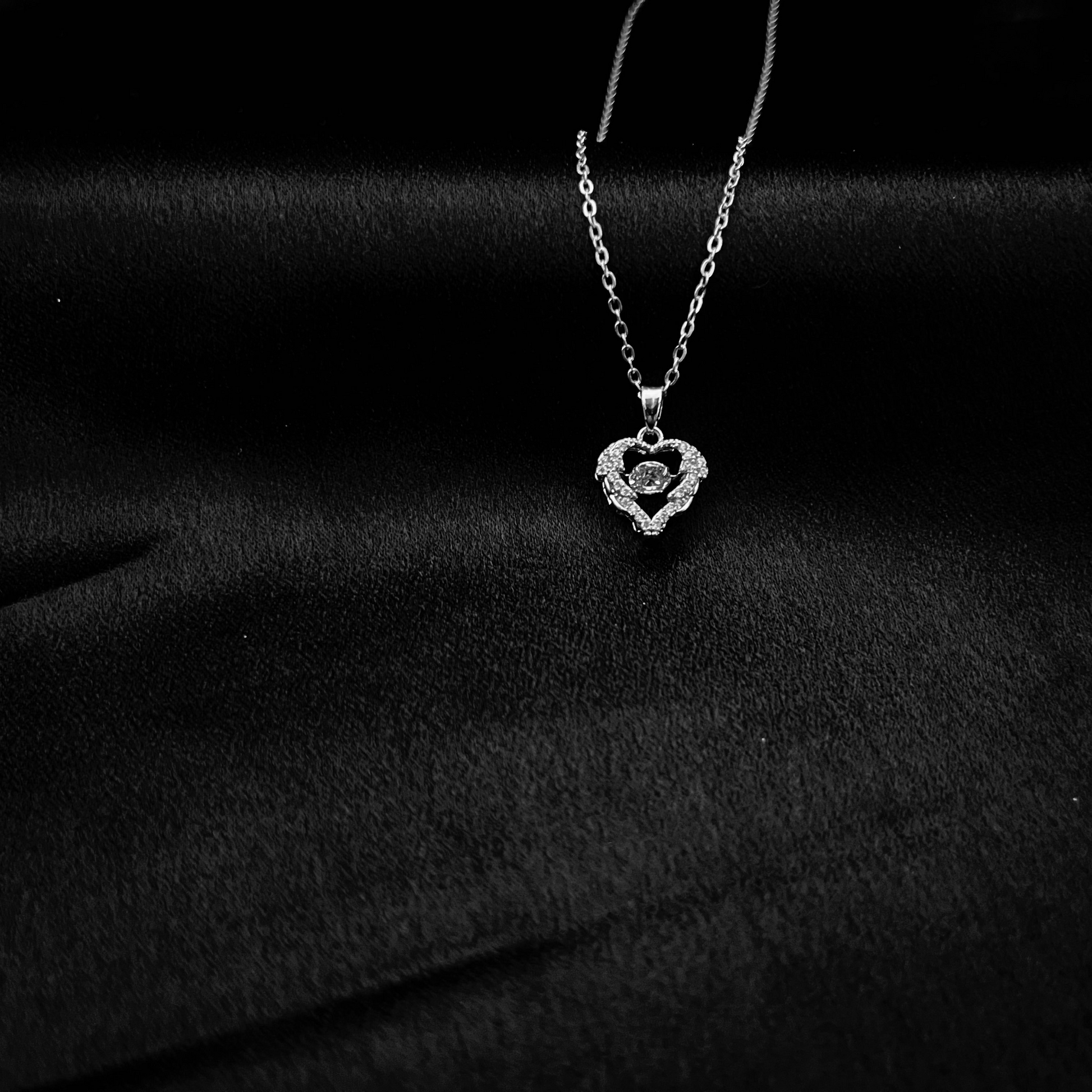 Sparkling Heart Pendant Necklace with Crystal Centerpiece